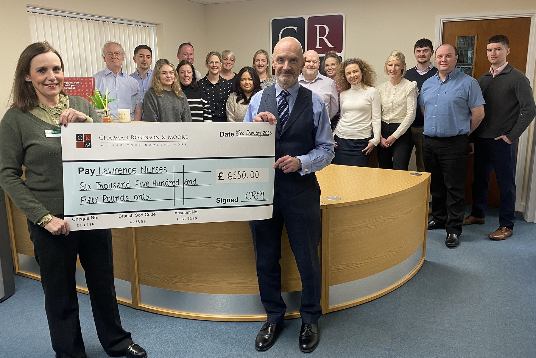 At Lawrence Nurses, we are thrilled to extend our heartfelt thanks to Chapman Robinson and Moore for their outstanding fundraising efforts throughout 2024. Your generosity has resulted in an incredible total of £6,550 raised in aid of our nursing team.